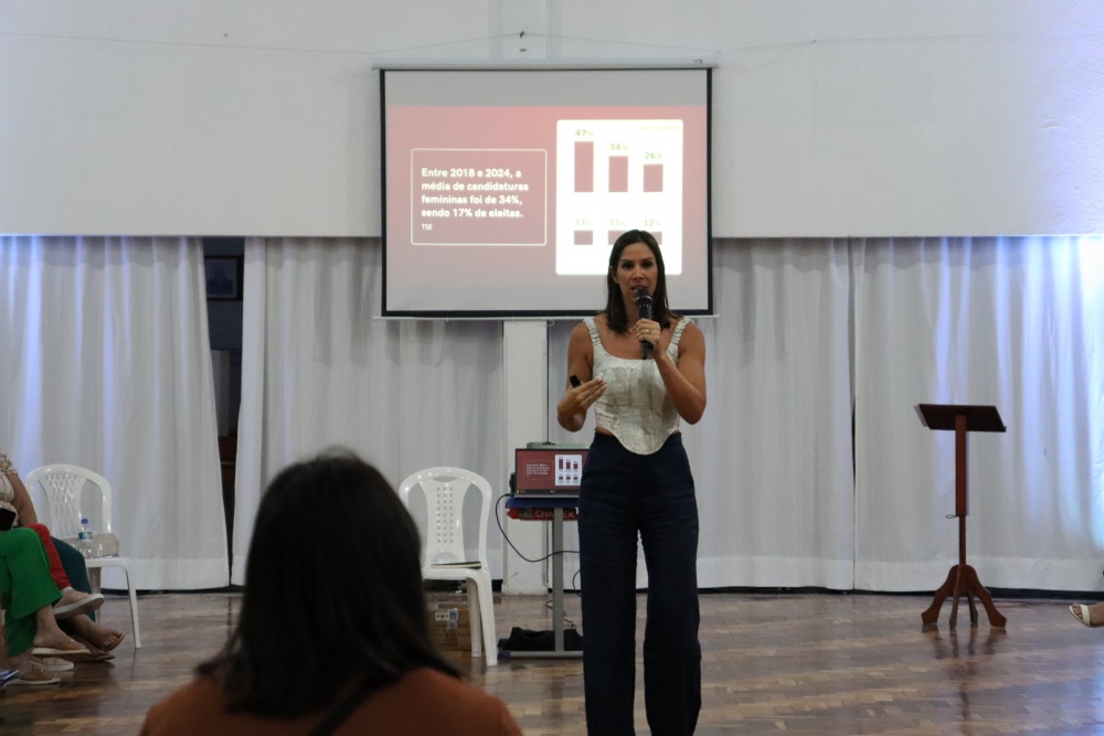 Ela também provocou reflexões sobre o contraste entre o avanço tecnológico da sociedade e a persistência de problemas estruturais, como o preconceito de gênero. A palestrante abordou ainda a violência política de gênero e a sub-representação feminina em espaços de poder.