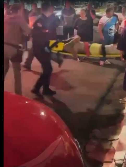 No local, a equipe do Corpo de Bombeiros Militar encontrou a vítima em decúbito dorsal, inconsciente. Durante a avaliação inicial, foi constatado que o homem apresentava um ferimento lacerante na região frontal do crânio e outro na mão direita, ambos com sangramento ativo.