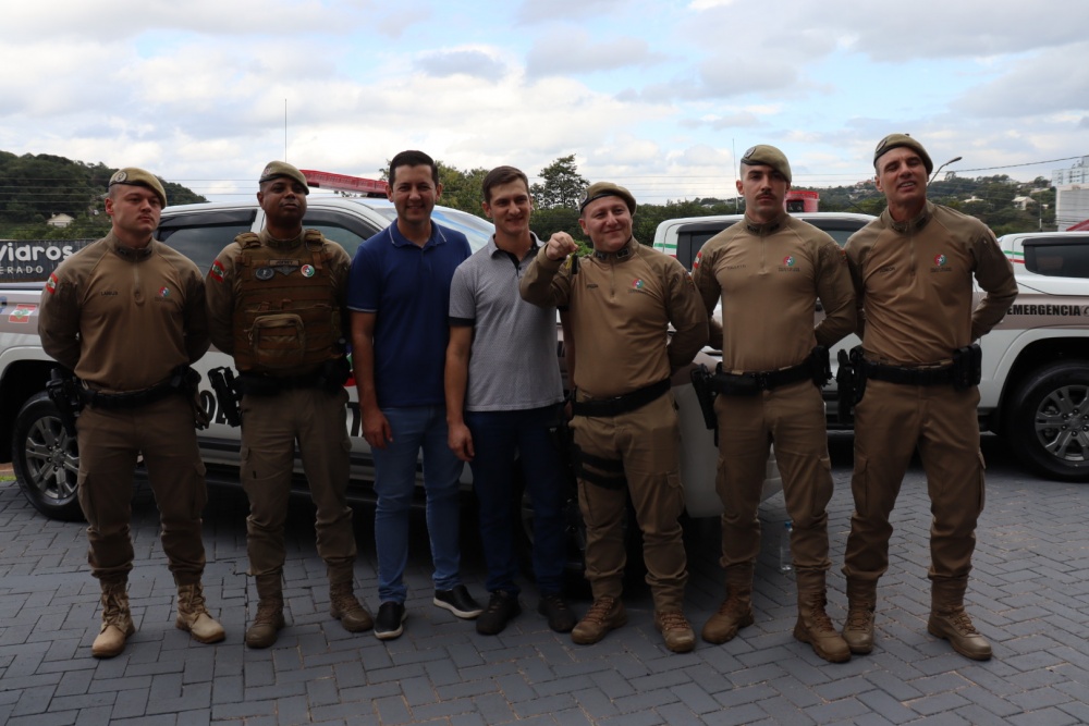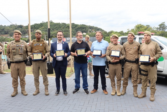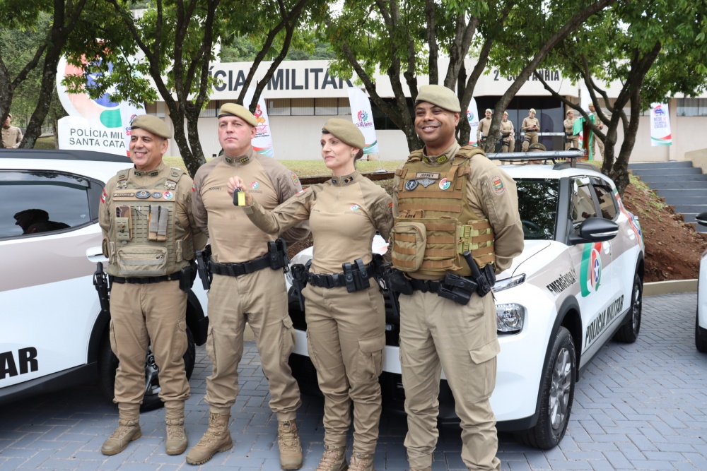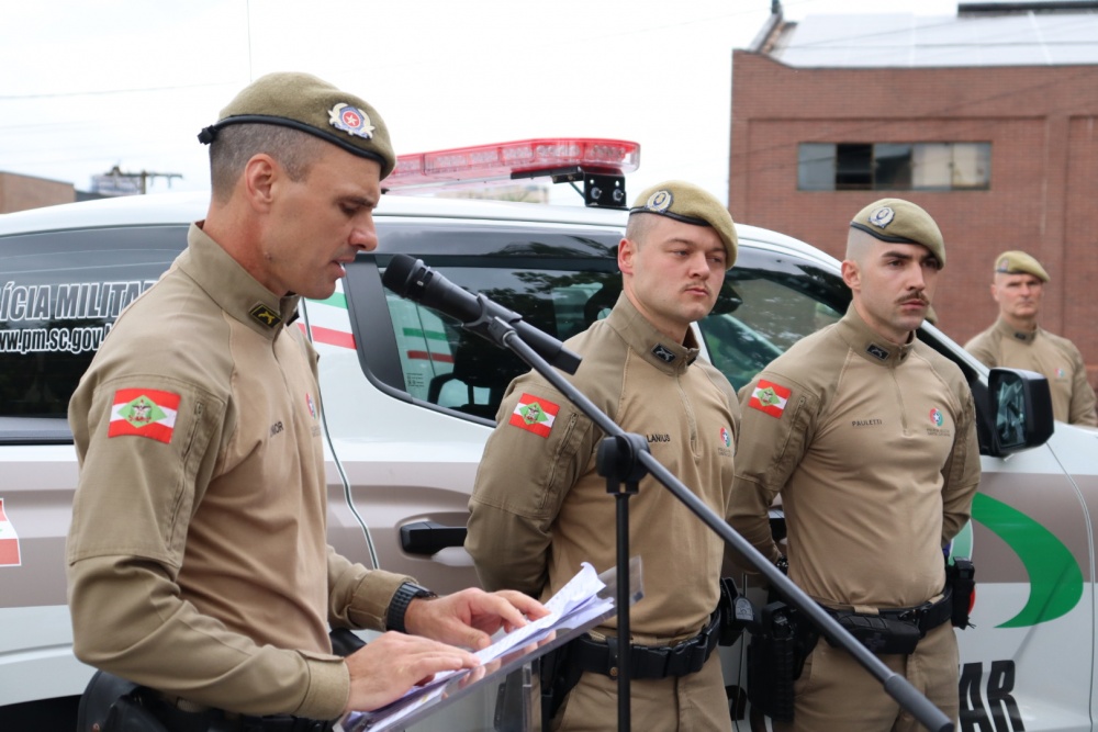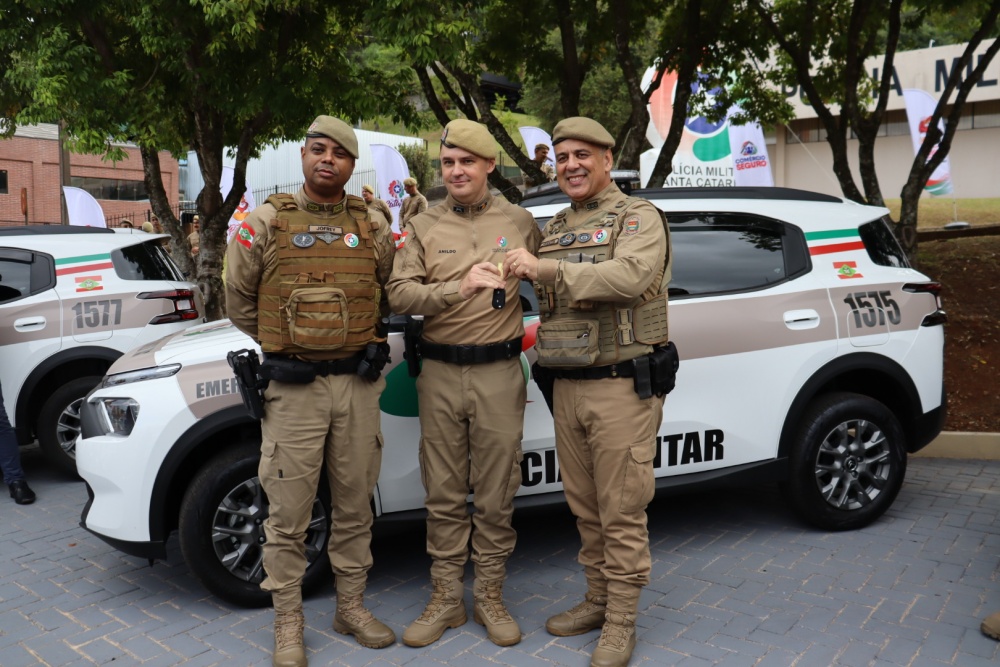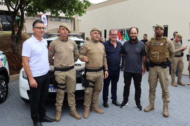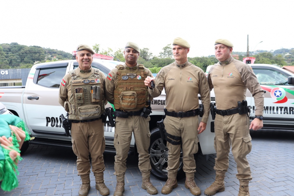 Durante o evento, também foram entregues oito viaturas que irão reforçar o policiamento na região. São Miguel do Oeste recebeu uma viatura destinada à Patrulha Rural e outra à Rede Catarina. São Miguel da Boa Vista e Anchieta foram contemplados com viaturas para patrulhamento rural. Já os municípios de Anchieta, Princesa e Palma Sola receberam veículos para Rádio Patrulha, enquanto São José do Cedro foi contemplado com uma viatura para as atividades do Proerd. A entrega foi realizada pelo Subcomandante-geral da Polícia Militar de Santa Catarina, Coronel PM Jofrey Santos da Silva, aos representantes de cada município.