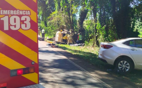 Duas mulheres que estavam no carro da saúde de São Bernardino seguem internadas em estado grave na UTI após a colisão registrada na rodovia PR-158, na divisa entre São Lourenço do Oeste e Vitorino.