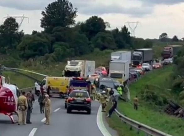 O acidente aconteceu em um trecho de descida, quando um caminhão não conseguiu frear diante do trânsito lento na rodovia e atingiu diversos outros veículos.