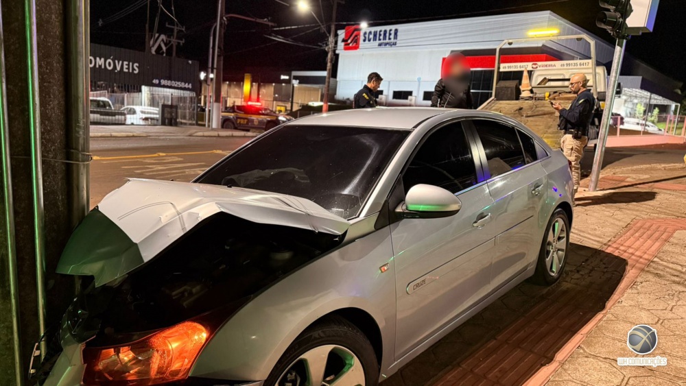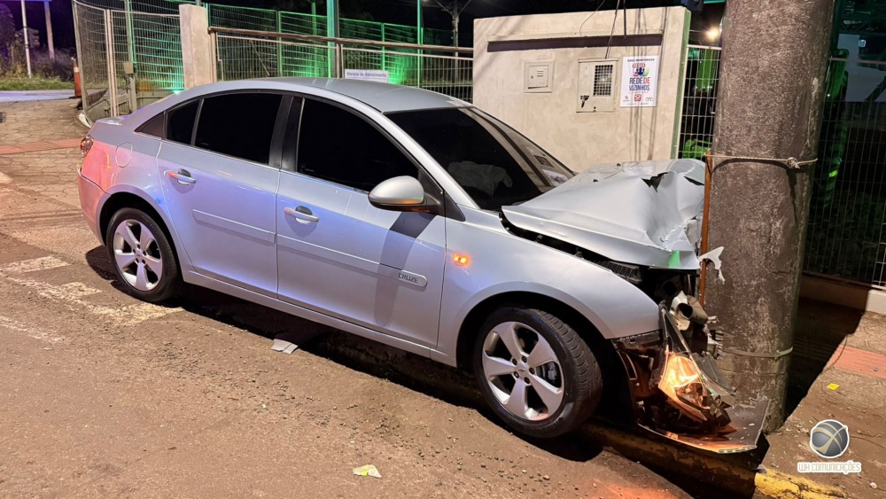 O caso ocorreu no cruzamento da Avenida Willy Barth com a Rua Arno Schwanbach, onde um Chevrolet Cruze, com placas do município, colidiu contra um poste de energia.