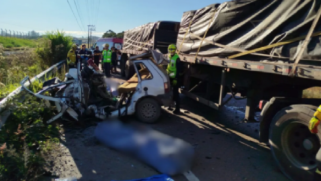Uma mulher morreu após um acidente entre um carro e um caminhão na rodovia BR-163, em Dionísio Cerqueira, no Extremo-Oeste do estado.