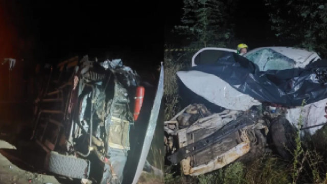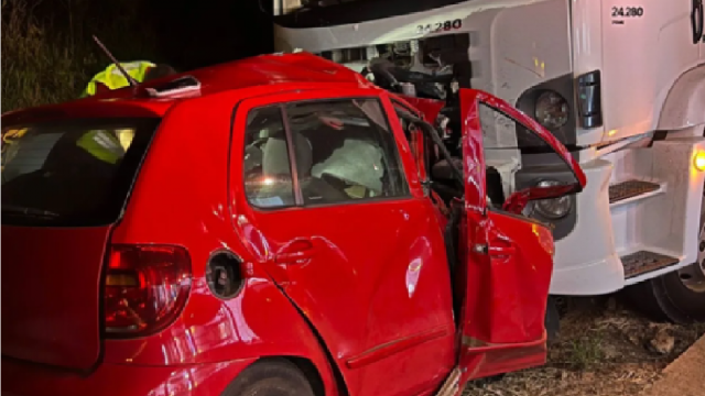 Um carro Fiat Uno bateu contra um caminhão por volta das 7h, na localidade de Bela Vista. Os cinco ocupantes do automóvel morreram ainda no local.