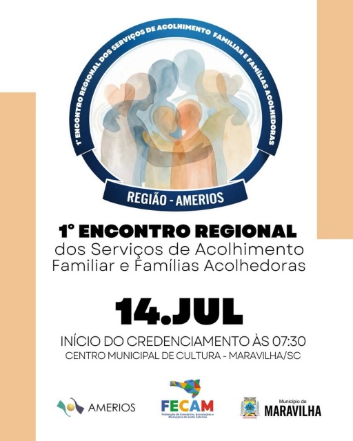 Maravilha será sede do 1º Encontro Regional dos Serviços de Acolhimento Familiar e Famílias Acolhedoras – Região AMERIOS, no dia 14 de julho. O evento contará com palestras e Mesa Redonda, com o intuito de reunir profissionais, gestores e a comunidade para dialogar sobre acolhimento, proteção e cuidado.