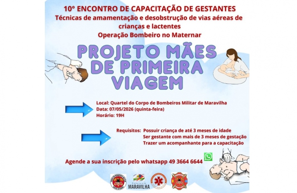 Em maio, o Corpo de Bombeiros Militar de Santa Catarina (CBMSC), em parceria com o Serviço de Atendimento Móvel de Urgência (SAMU) de Maravilha, promove a 10ª edição do Projeto Mães de Primeira Viagem. O encontro será no dia 7, às 19h, no quartel dos bombeiros do município.
