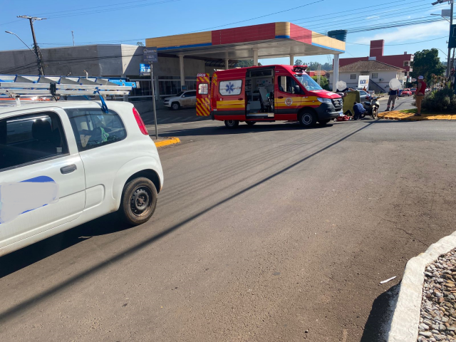 A colisão ocorreu por volta das 10h30, na rótula das avenidas Araucária e Anita Garibaldi, envolvendo uma motocicleta Honda Biz e um veículo de passeio.