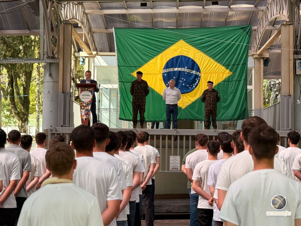 O evento foi realizado na Praça Walnir Bottaro Daniel e contou com a presença do prefeito Edenilson Zanardi, do secretário de Cultura Anderson Pelegrini e do comandante do 14º RCMec, Coronel Coradini.
