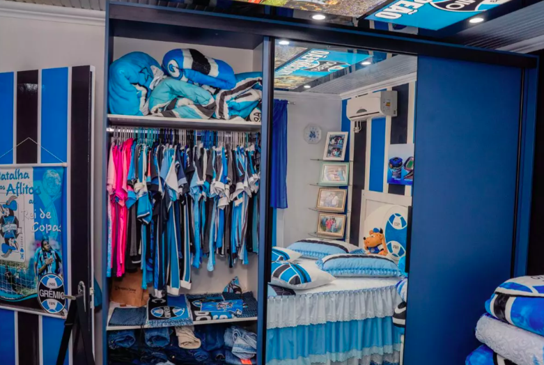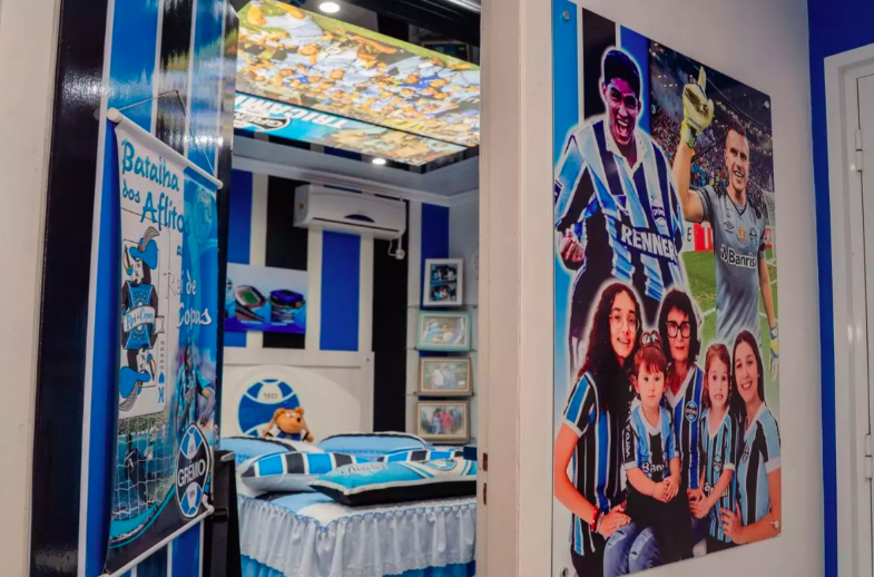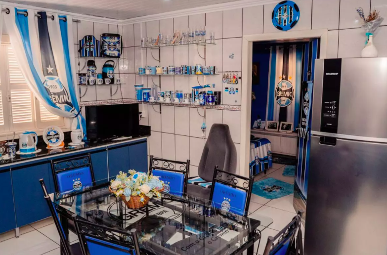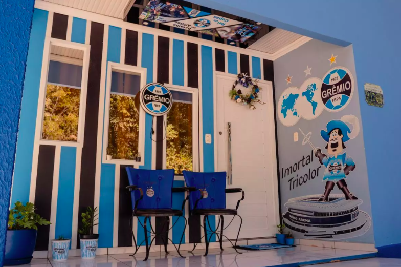 A residência pertence a Mercedes Cerutti, de 68 anos, conhecida como dona de uma das casas mais gremistas do mundo. Do lado de fora ao interior do imóvel, absolutamente tudo remete ao clube gaúcho: paredes, móveis, objetos decorativos e lembranças transformaram a casa em um verdadeiro templo tricolor.