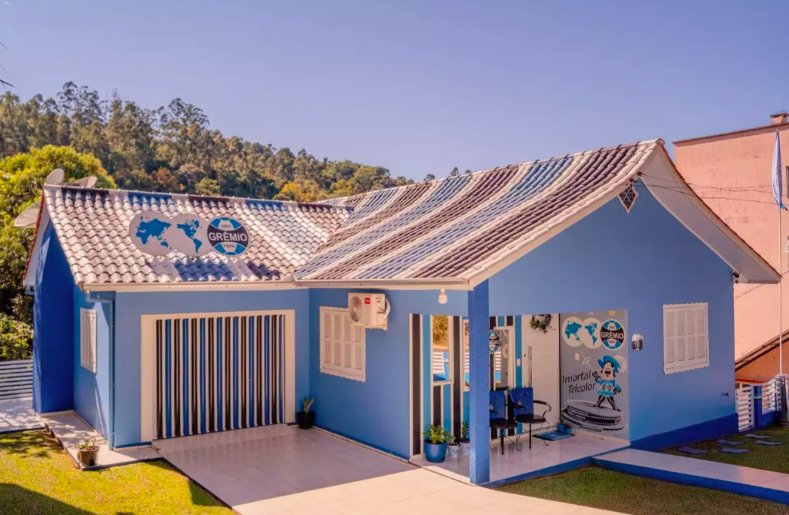 No acesso principal do trecho urbano de São João do Oeste, no Extremo-Oeste de Santa Catarina, uma casa azul, preta e branca chama a atenção de quem passa pelo local. Mais do que uma combinação de cores, o imóvel se tornou símbolo de uma paixão que atravessa décadas pelo Grêmio.