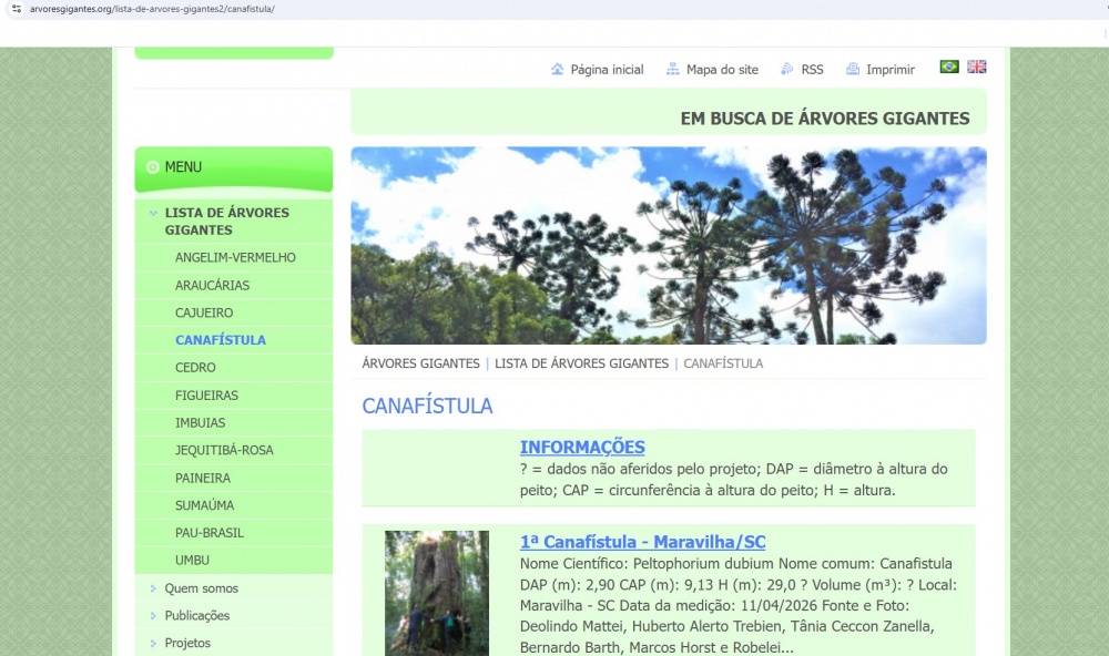 Uma árvore de grandes proporções localizada em Maravilha vem chamando a atenção de pesquisadores e moradores. Identificada como Canafístula, ela é atualmente a maior da espécie no Brasil catalogada no levantamento do projeto Árvores Gigantes, coordenado pelo pesquisador Marcelo Scipioni, da Universidade Federal de Santa Catarina (UFSC), Campus Curitibanos.