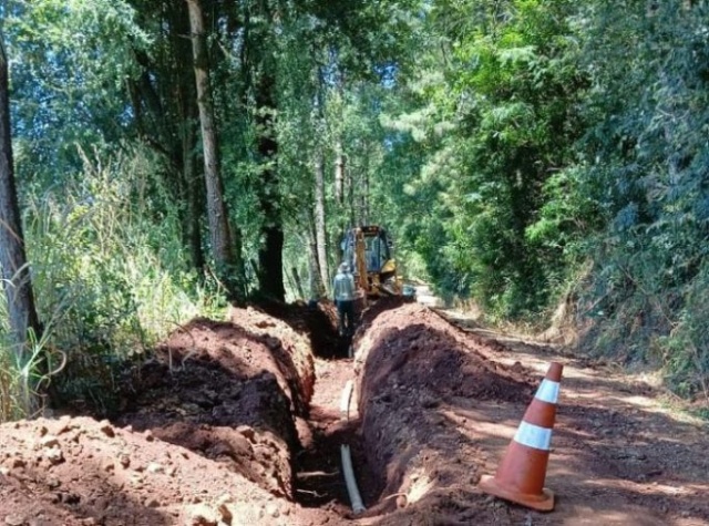 ao longo da estrada geral, a nova tubulação substitui a antiga, que passava