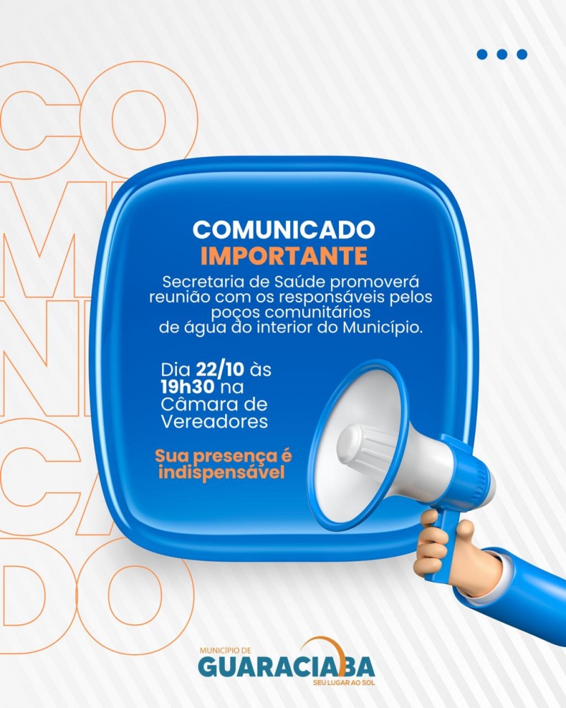 Câmara de Vereadores de Guaraciaba. O objetivo é para tratar de assuntos