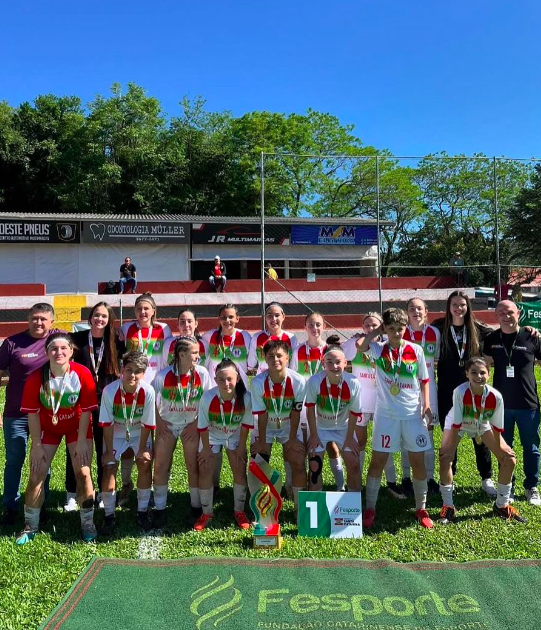 As atletas da Escola Municipal Padre Alfredo Kasper, de Guaraciaba, conquistaram o título estadual no futebol de campo feminino do programa Moleque Bom de Bola. A vitória consagra o empenho das alunas e o apoio constante da equipe escolar ao longo de toda a competição.