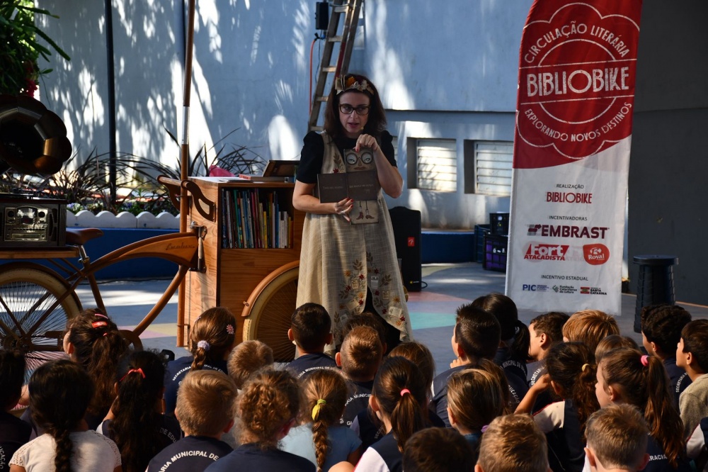 iniciativa é conduzida por Camila Miotto, mediadora de leitura de Chapecó, que