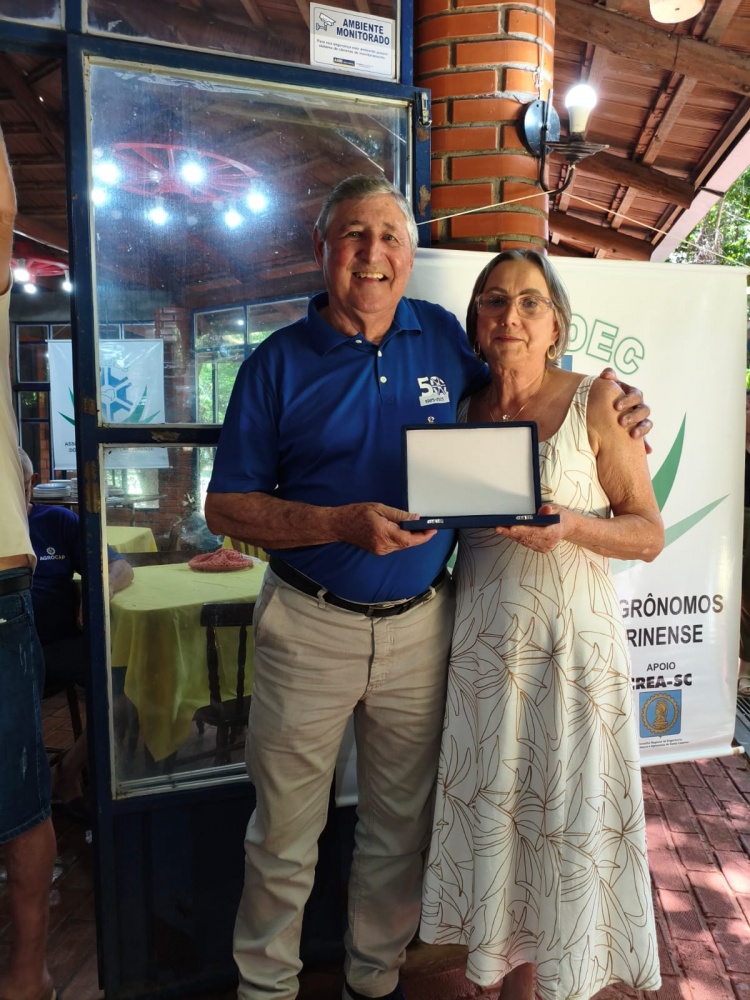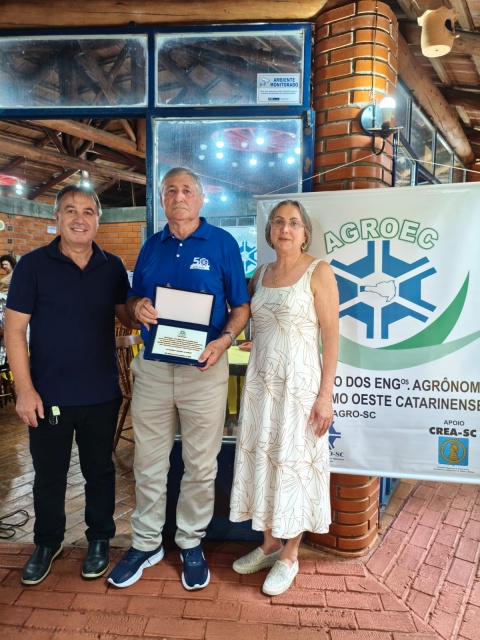 De acordo com Elias, na oportunidade também foi feita uma homenagem em comemoração aos 50 anos de formatura do engenheiro agrônomo, José Milani Filho, com a entrega de uma placa em reconhecimento a sua trajetória profissional e dedicação as causas da agronomia e ao agronegócio, principalmente no Oeste de SC.
