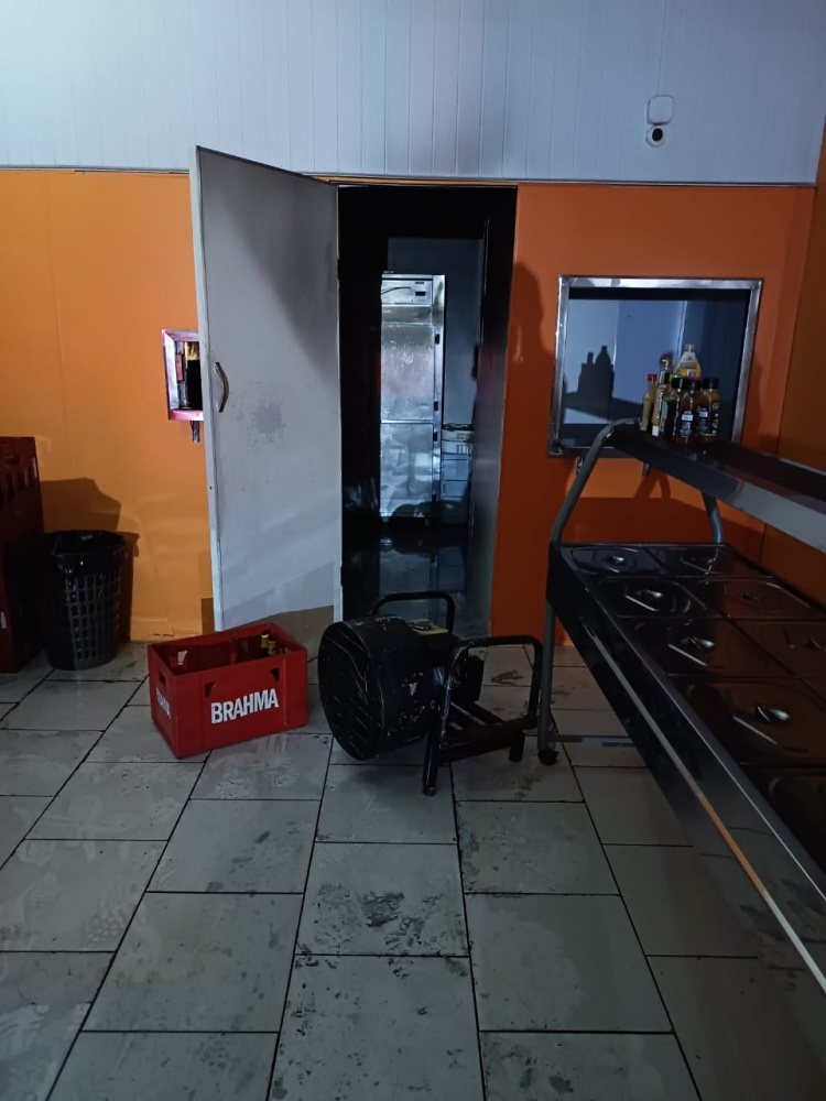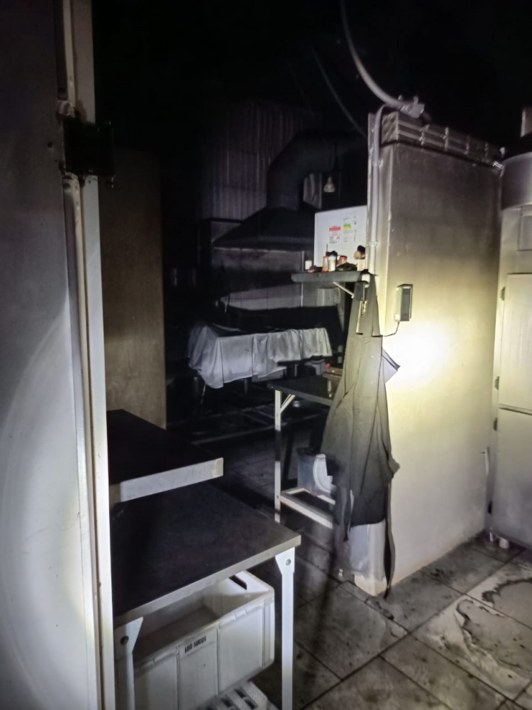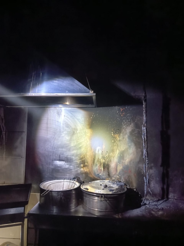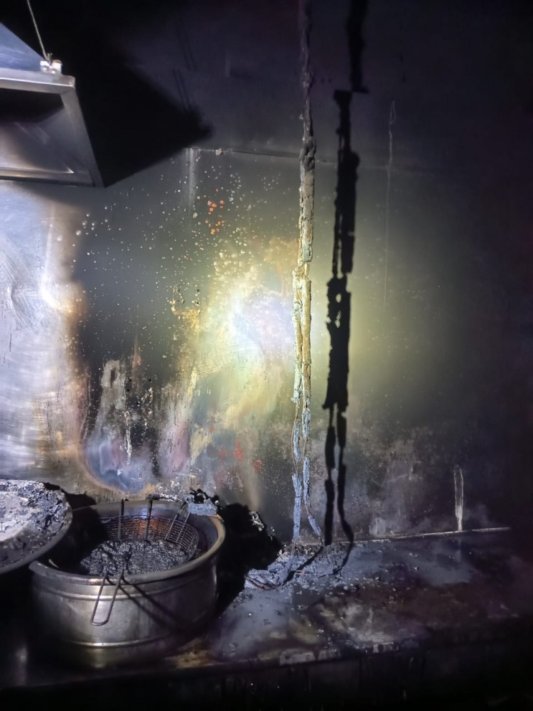 foco principal do incêndio, situado próximo a duas fritadeiras elétricas