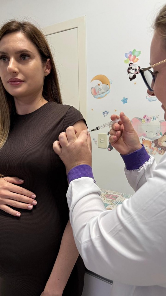 Ela explica que estão imunizadas todas as gestantes a partir de 28 semanas de