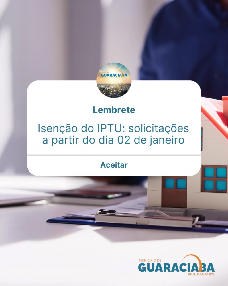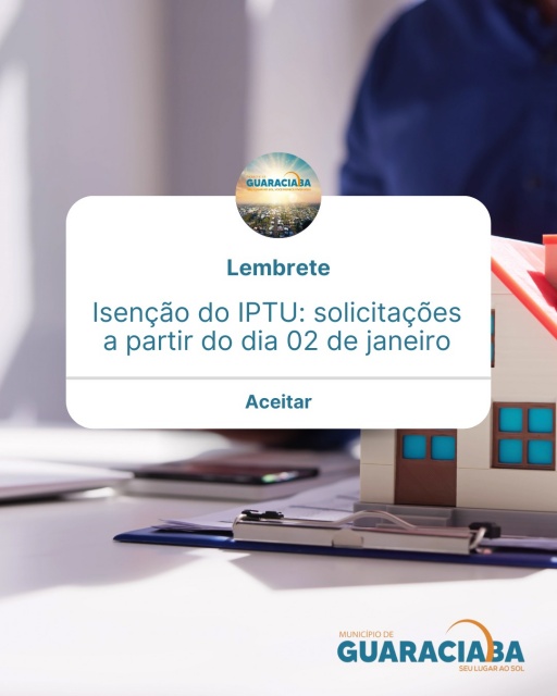 isenção e redução do IPTU para o ano de 2026 inicia no dia 02 de janeiro. De