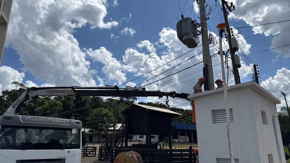 instalação de um transformador trifásico de 300 kVA, incluindo base de apoio,