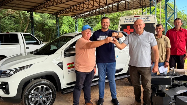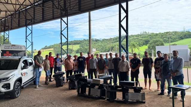 presentes no ato o prefeito Domingos Marcon, o secretário de Agricultura,