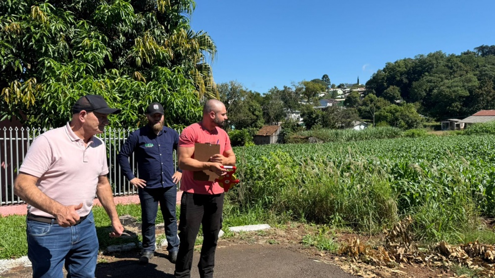 O prefeito de Guaraciaba, Domingos Marcon, acompanhado da equipe técnica do município, além de um engenheiro civil e um topógrafo da empresa responsável pelo levantamento das ruas, realizou uma visita à área onde será executada a abertura e o prolongamento da Rua Santos Dumont e da Rua Projetada.