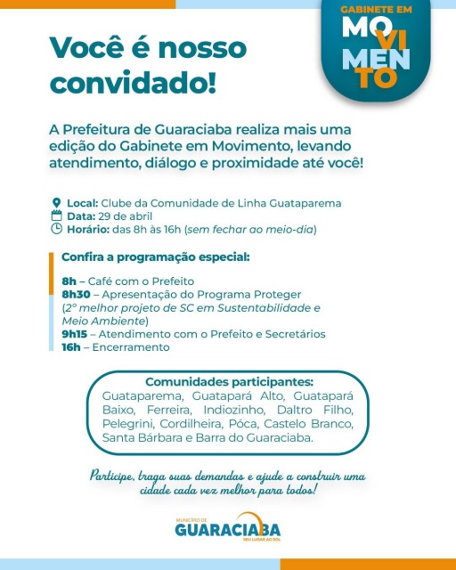 Administração Municipal de Guaraciaba reforça o convite para que a população participe,