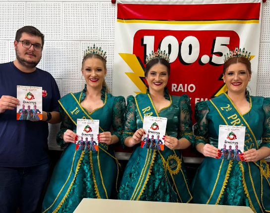 A rainha Thamyris Welter e as princesas Débora Deters e Isadora Schommer Eidt falaram sobre os horários de abertura dos portões, as atrações da feira e convidaram a comunidade a prestigiar os expositores, os negócios e os shows programados.